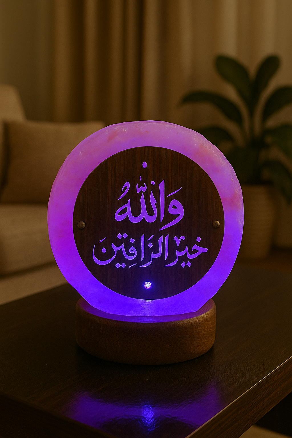 Noor-e-Razzaq USB Salt Lamp combines Islamic calligraphy with pure Himalayan salt, offering spiritual ambiance, peaceful lighting, and a sacred presence in any space. Ideal for desktops and prayer areas.