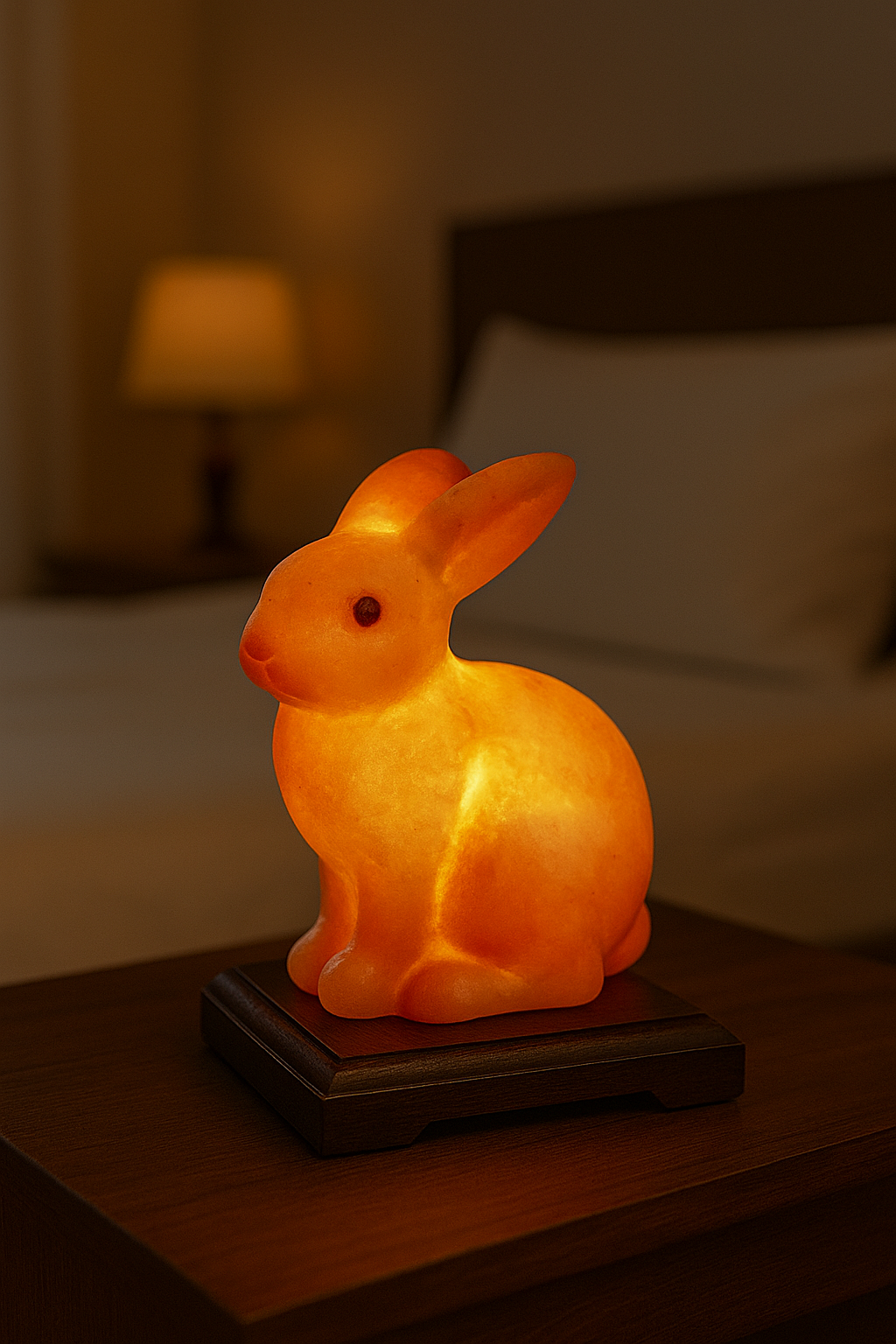Serenity Rabbit Salt Lamp offers soft warm light, air purification, and stress relief with a charming rabbit design. Perfect for peaceful home decor, nurseries, and wellness-focused spaces.