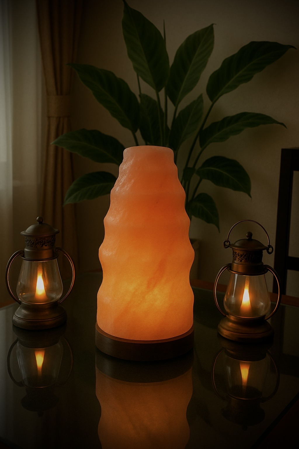 The Serenity Solara Salt Lamp is a stunning blend of natural Himalayan salt and artistic craftsmanship. Designed in a radiant sun-inspired shape, it creates a warm and welcoming atmosphere in any room. When illuminated, this lamp emits a soft amber glow that promotes relaxation, reduces stress, and supports better sleep. Known for its natural air-purifying qualities, it helps cleanse the environment by releasing healthy negative ions. Perfect for living spaces, meditation corners, or workspaces, the Solara lamp brings both beauty and wellness into your home. Choose Serenity for a touch of warmth, health benefits, and elegant decor.